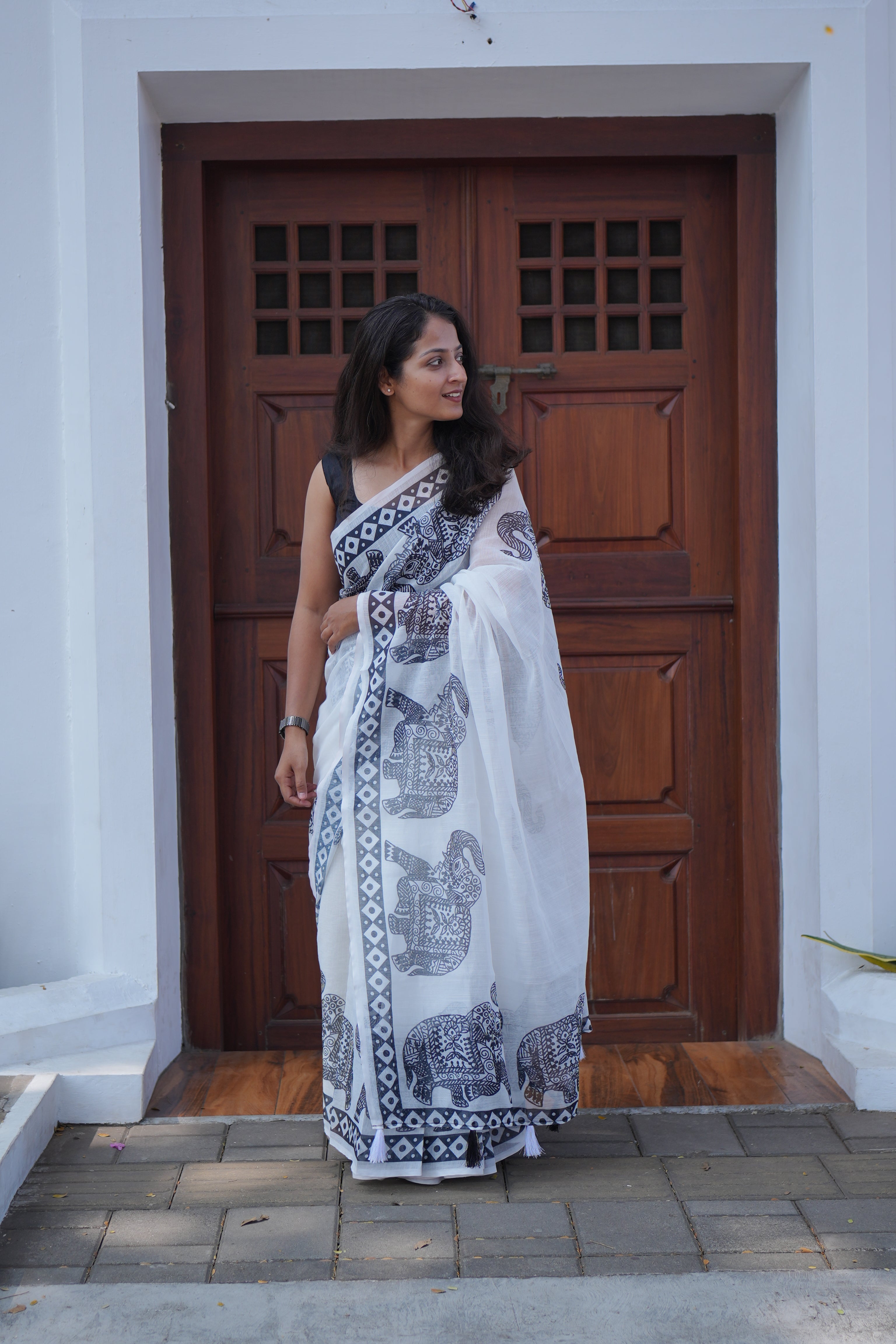 Handloom Linen Cotton Printed Festive Saree